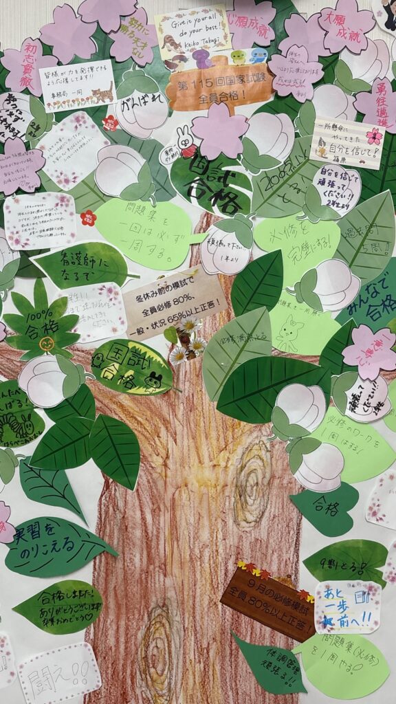 今まで学生生活を支えてくれた身内の方や教職員、たくさんの方が全員の国家試験合格を信じて応援しています。